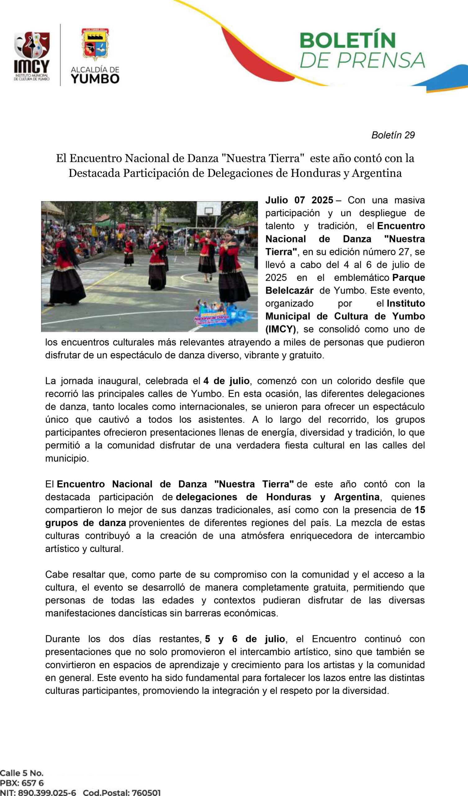 El Encuentro Nacional de Danza «Nuestra Tierra» este año contó con la Destacada Participación de Delegaciones de Honduras y Argentina