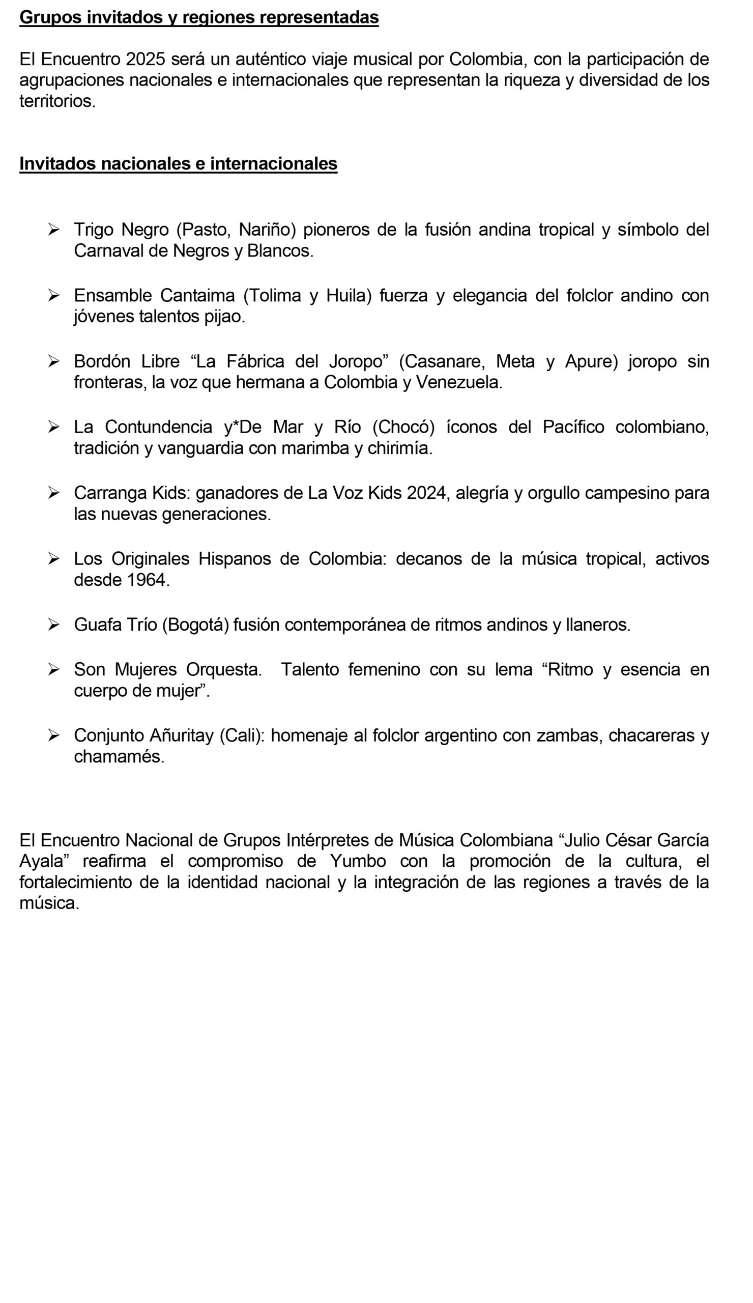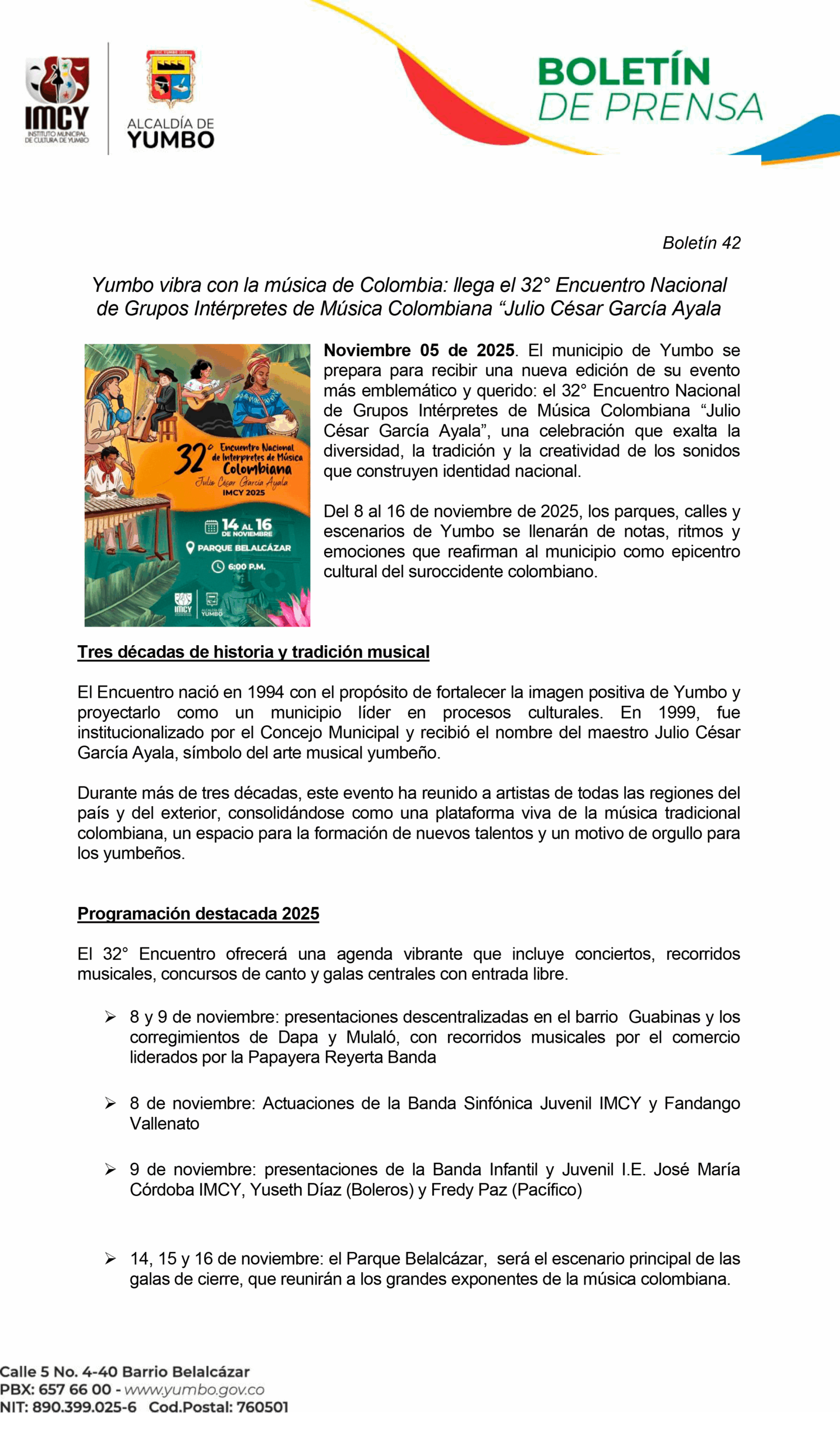 Inicio » Yumbo vibra con la música de Colombia: llega el 32° Encuentro Nacional de Grupos Intérpretes de Música Colombiana “Julio César García Ayala